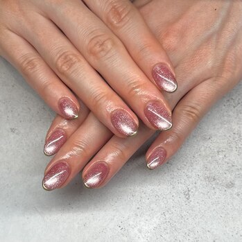 きらきらマグネットにヴィンテージゴールドのメタルジェルがアクセントの細フレンチ◎
