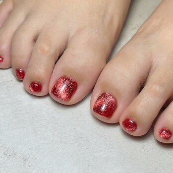 petit mouton鶯谷店ユミです!今日は湿度が高くて汗が止まりません(T-T)まさしく滝汗!夏も終盤ですが、本日もフットネイルのご紹介です♪ こちらのカラーはこの間ご紹介した2in1ジェルです!深みのある赤でとにかくド派手!フットに塗るととにかく可... -